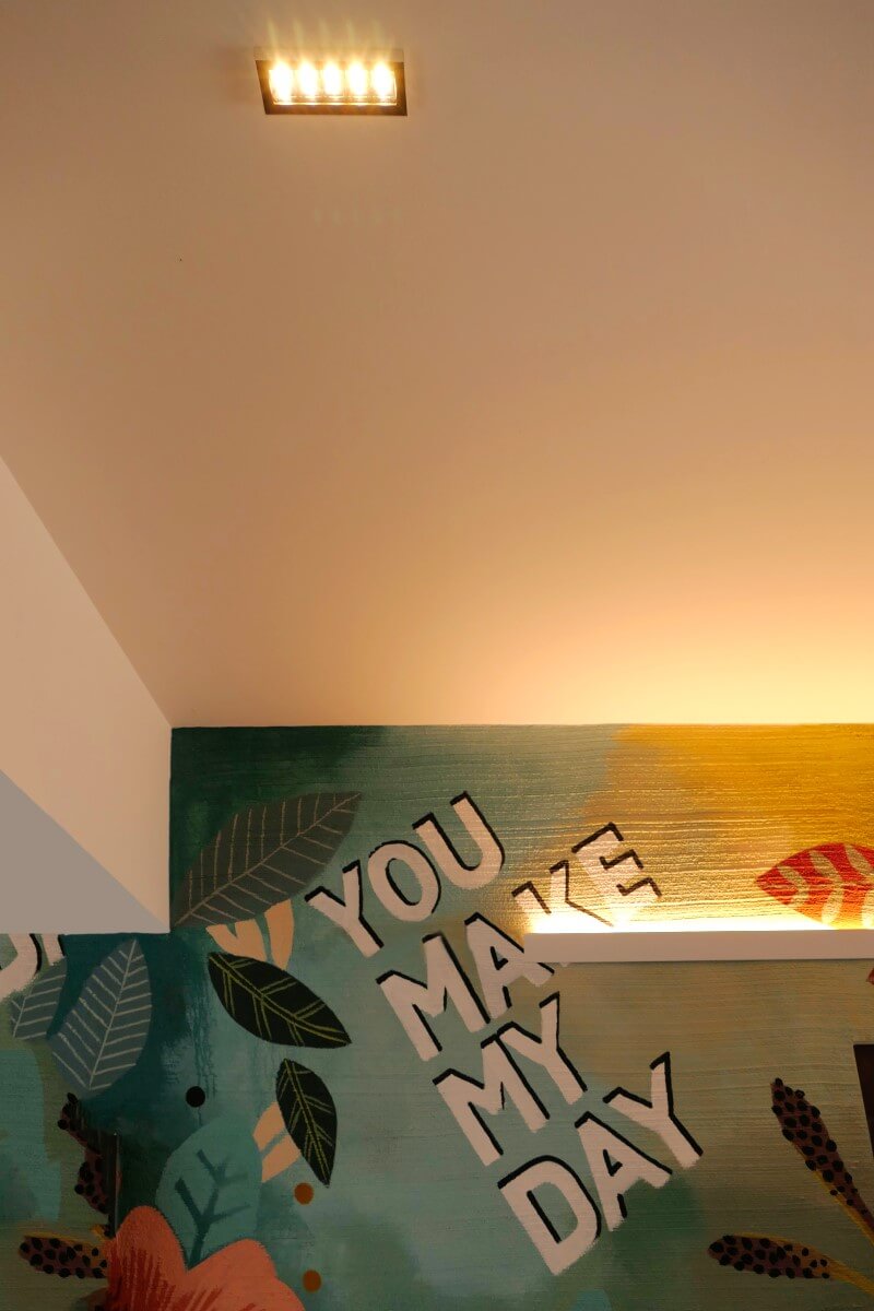 Neben kleinen Ladengeschäften in der Fussgängerzone Hanaus, öffnet sich ein kleiner Durchgang zu einem Hinterhof. Minimale, lineare Einbaudownlights in der Decke geben ein gleichmäßiges, warmweißes Grundlicht auf den Boden und laden Fussgänger ein, den Schritt in die Passage zu wagen. Künstlerisch bemalte Wände erhalten durch die indirekte Unterleuchtung mittels einer rgb Lichtlinie einen zusätzlichen Farbkick. Dezent beleuchtete Schaukästen ziehen ebenfalls die Blicke auf sich und machen auf das neugierig, was die Passanten im Hinterhof erwartet.