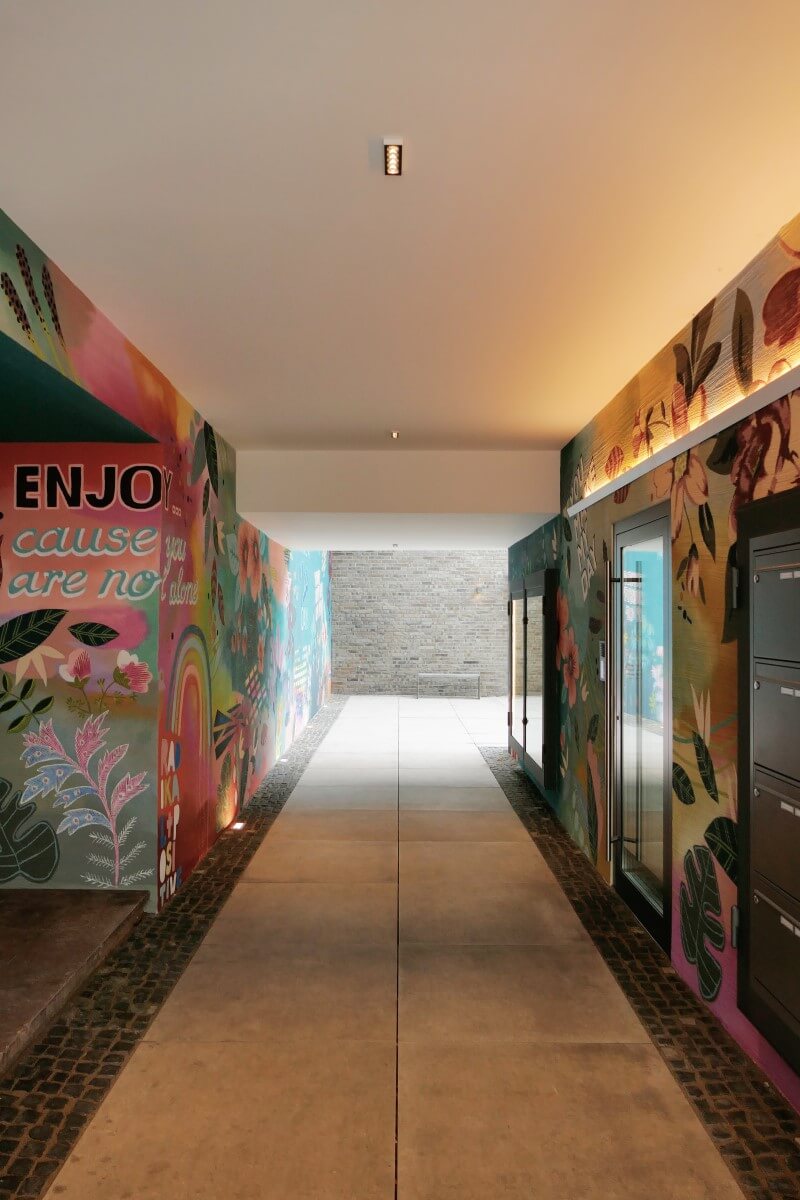 Neugierde wecken und Attraktivität ausstrahlen sind, neben einer Grundhelligkeit, die Hauptmerkmale der neu gestalteten Passage zum Hinterhof.