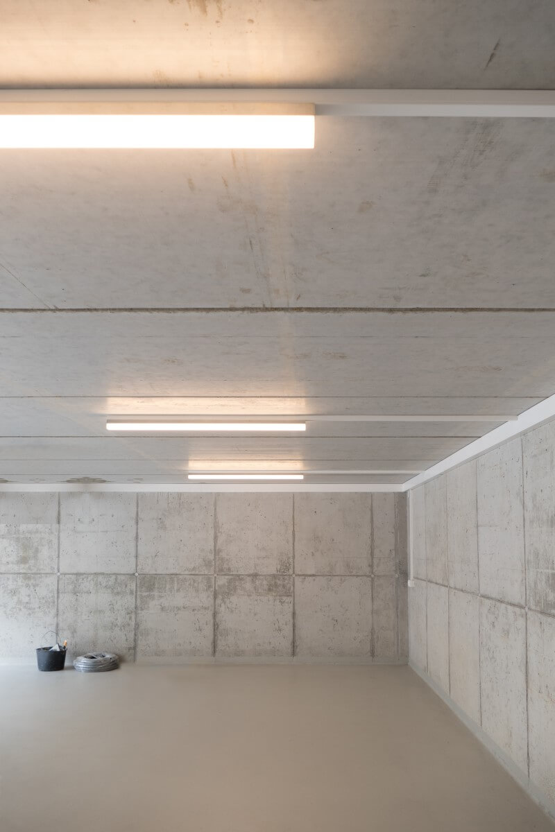 Besonderheiten Integrierte Downlights in betonkernaktivierter Kühldecke